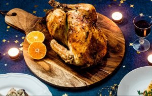 Hallo, kerstkip! We vullen ‘m met een mengsel van walnoten, sinaasappel, knoflook en rozemarijn. Behoorlijk kerstig toch? Serveer de kip met home made pommes duchesse en eventueel nog wat haricots verts en klaar is je main course. Kijk hier!