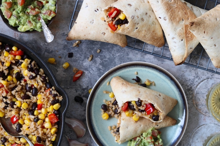Samosas met een Mexicaanse twist dankzij (natuurlijk) rijst, tortilla’s, zwarte bonen en maïs. Nos gusta!