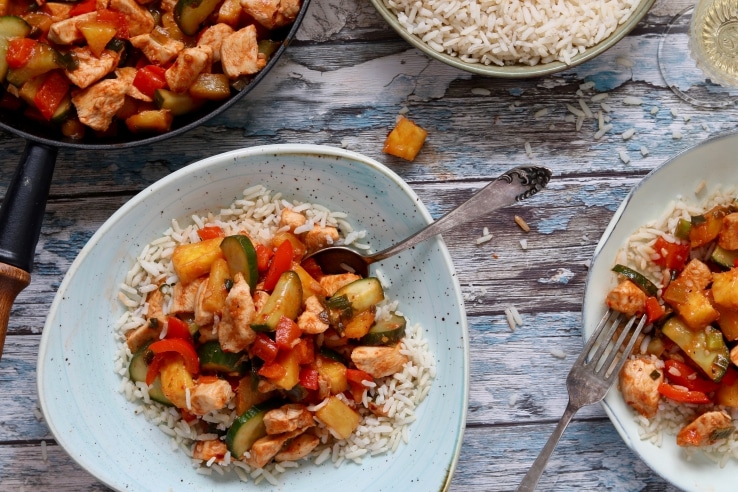 Deze zelfgemaakte zoetzure kip met rijst staat binnen 25 minuten op tafel en is echt om te smullen! De heerlijke zoete ananas geeft dit maaltje een extra tropical twist.