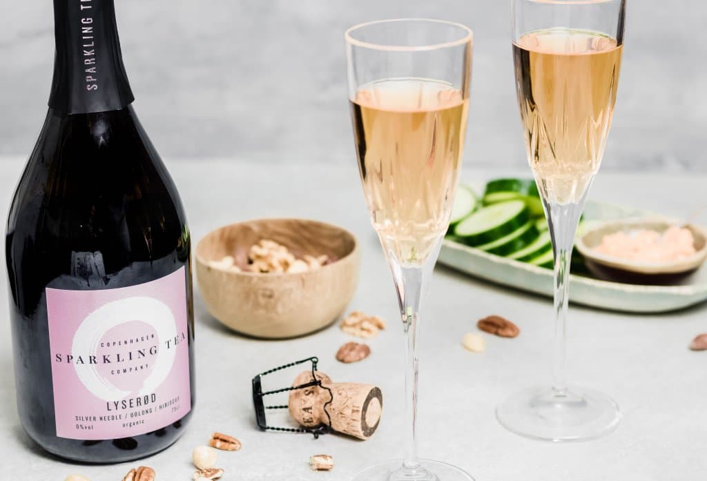 Deze heerlijk bloemige LYSERØD sparkling tea, gemaakt van Oolong thee en hibiscus, is een perfecte vervanger bij elke toost! Het drankje ziet er spectaculair uit in een champagneglas naast een plateautje oesters of een bordje gepelde gamba’s.