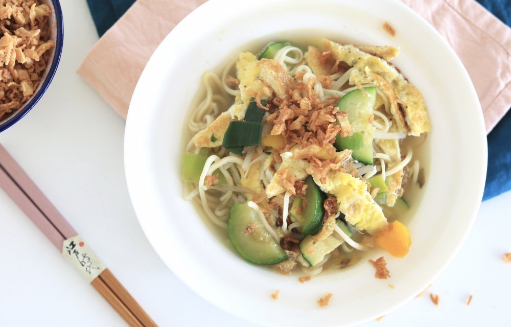 Mmm… Deze simpele noedelsoep met omeletreepjes, wokgroenten en gebakken uitjes on top is echt heerlijk! Makkelijk en binnen 15 minuten klaar, dit wil je toch meteen maken?