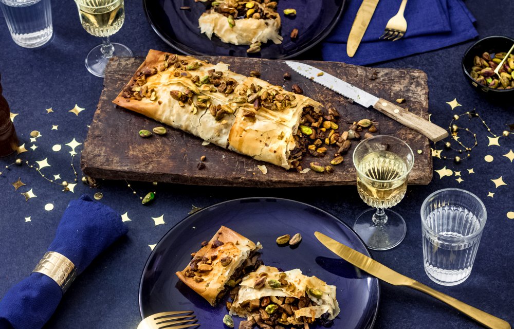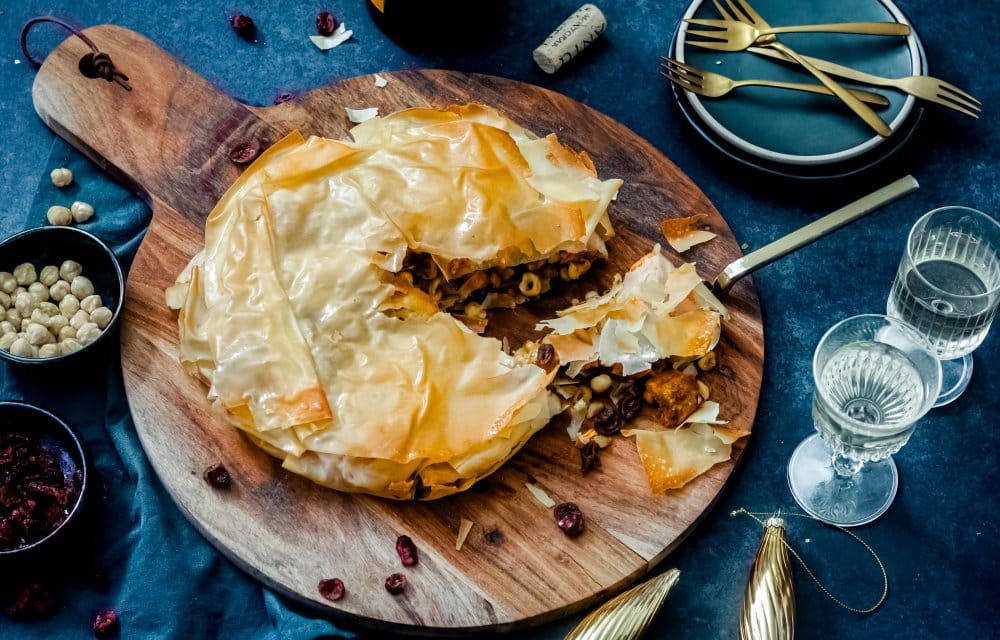 Geen baklava als dessert, maar hartige baklava als vegetarisch kerst hoofdgerecht! Klinkt als muziek in de oren toch? Deze baklava wordt gemaakt met filodeeg, zoete aardappel, pistachenoten, feta en honing. Wat een héérlijke combi is dat. Moet-je-proberen. Ziet er ook lekker feestelijk uit, dus je steelt vast en zeker de show bij ‘t kerstdiner als je dit voorschotelt. En niemand die de kalkoen mist, hoor!
