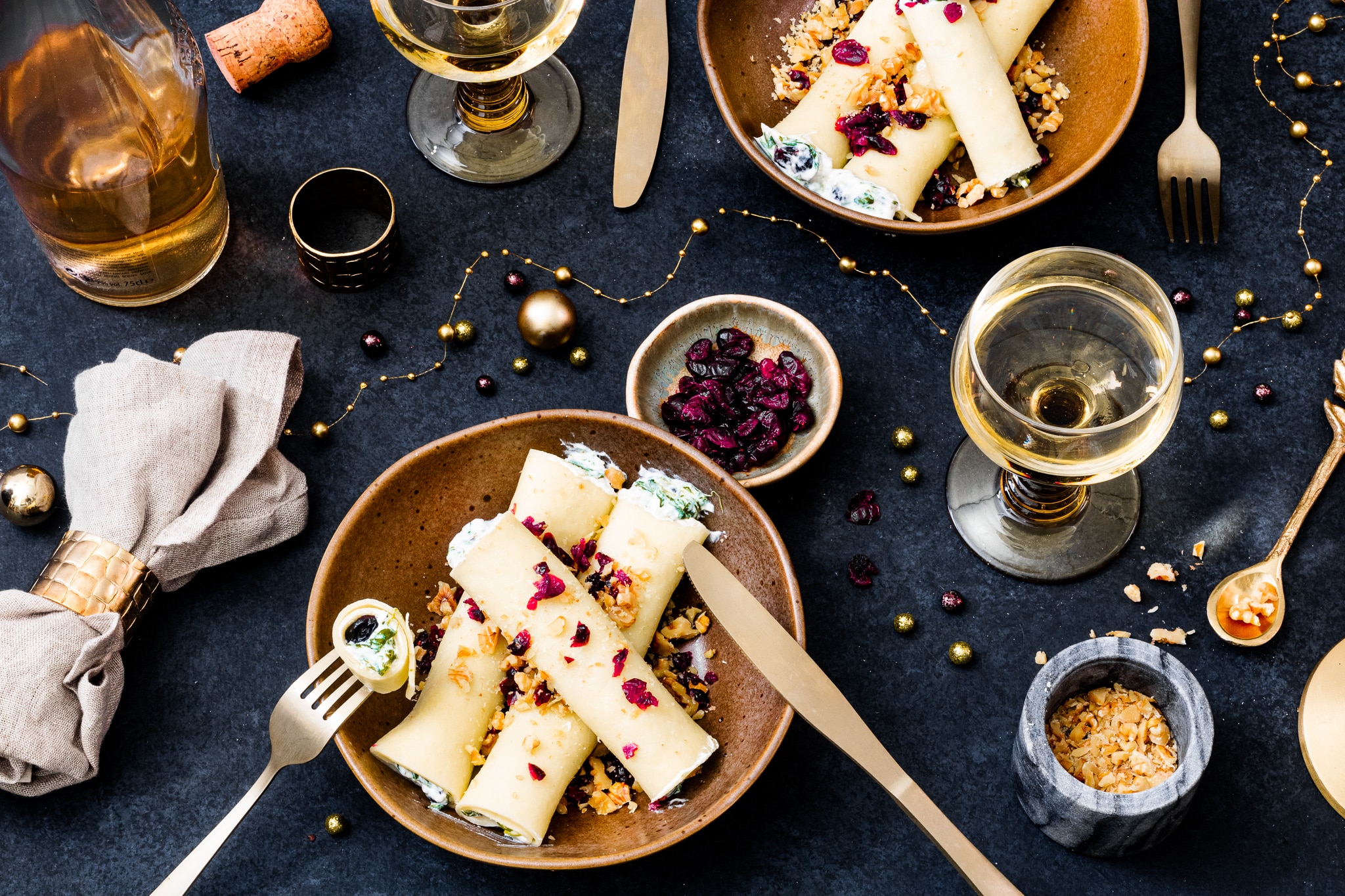 Met maar 5 ingrediënten flans je dit vegetarisch kerst hoofdgerecht in elkaar. Je maakt de rolletjes met lasagnebladeren en vult ze met spinazie, ricotta, walnoten en cranberry’s. De cranberry’s maken ‘m helemaal feestelijk en kerstig!