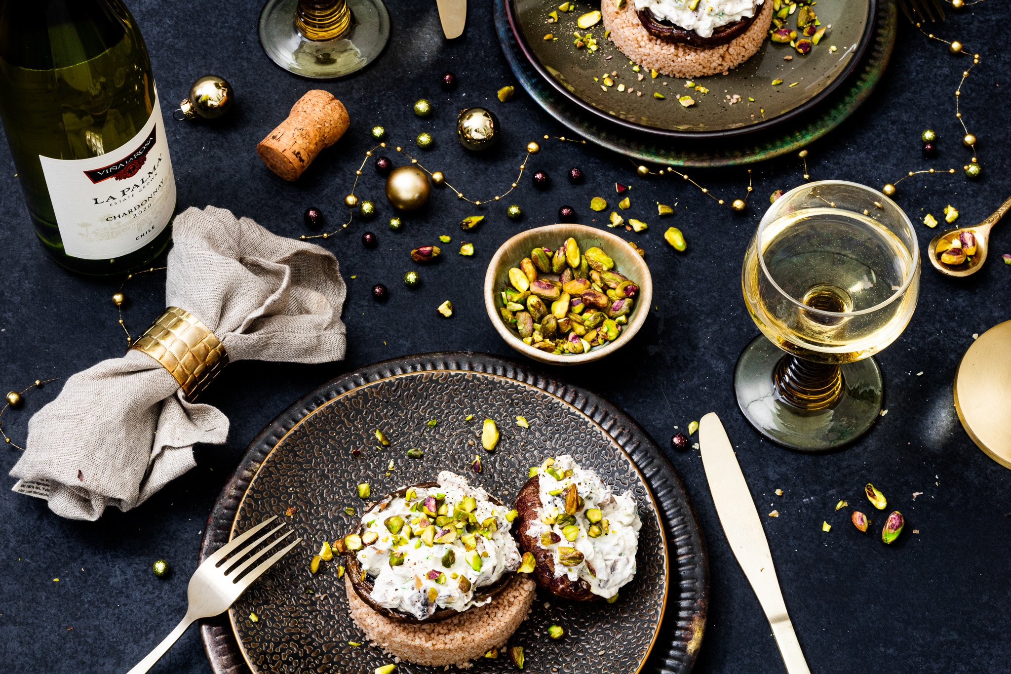 Met maar 5 ingrediënten maak je dit feestelijke gerechtje. De portobello’s zijn prima vleesvervangers! Je vult ze met couscous, roomkaas, bieslook en pistachenootjes. Lekker dat dit vegetarisch kerst hoofdgerecht is!