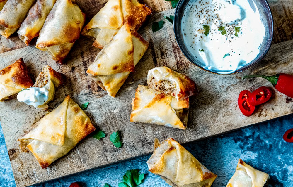 Tijd voor vlammetjes uit de oven; een koud kunstje! Loop jij er ook al warm voor? Ze zijn pittig en hebben een lekkere bite. Perfect als oud & nieuw hapje. Tip: dip ze in het sausje van yoghurt, knoflook en peterselie. Mmm… Hallo, smaakexplosie!