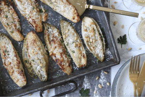 Mmmm, een gouwe ouwe van onze website. De fijne combi van groenten met een zachte kaas vind je in dit gerecht. Een heerlijke aanvulling op een wat zouter hoofdgerecht. Klik hier voor het recept voor deze leuke pakketjes. Je kunt ze bijvoorbeeld ook met aubergine maken!