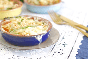 Deze schattige schaaltjes bevatten een romige éénpersoons aardappelgratins afgetopt met ten eerste groene asperges en tenslotte hazelnoten. Jep, da’s heerlijk. En feestelijk! Bekijk het recept hier.