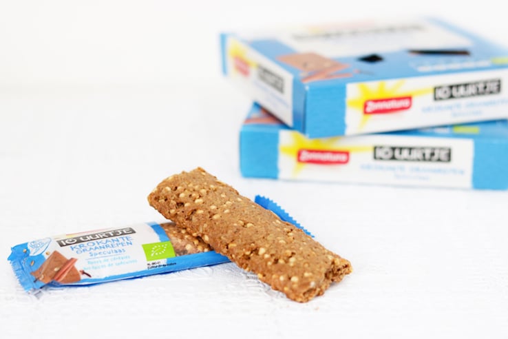 Als je standaard een snack in je tas hebt zitten, heb je altijd iets voor tussendoor. Ideaal! Deze biologische ’10-uurtje Krokante Graanrepen’ van Zonnatura zijn een goed én heel erg lekker kant-en-klaar alternatief. Ze geven je een verzadigd gevoel, zonder dat ze zwaar op de maag liggen en hebben een lekkere bite. Verkrijgbaar in de smaken chocolade en speculaas. Yum!