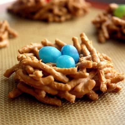 Niet zo in voor nestjes van noodles? Ga dan voor dit chocolade vogelnestje. Ook deze kun je zelf maken, klik hier.