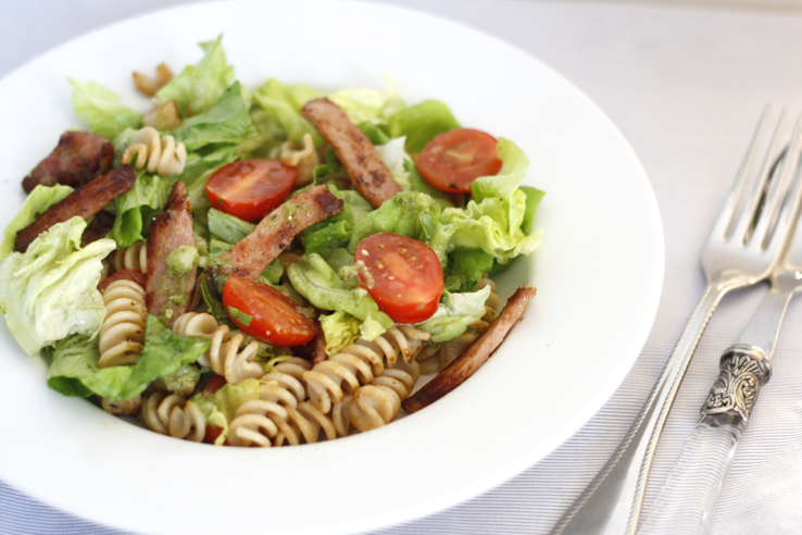 BLT, dat lust toch iedereen? Wij zijn er in ieder geval dol op! Met maar 5 ingrediënten maak je deze pastasalade met bacon, sla en tomaat.