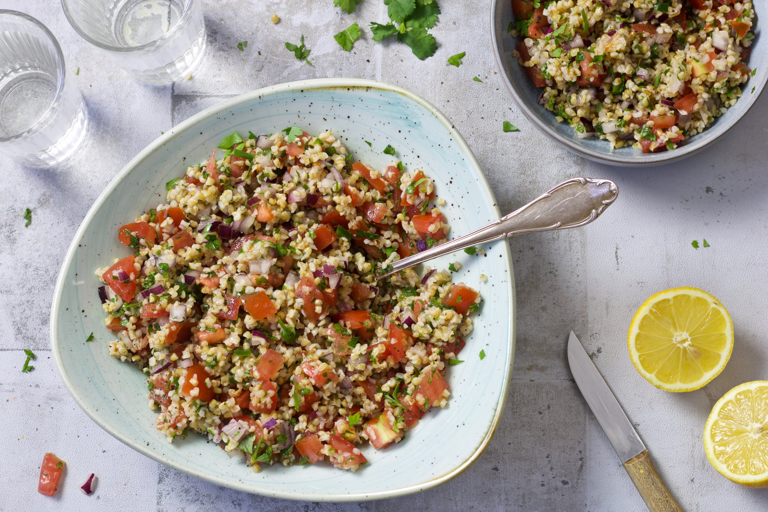 Ken je tabouleh al? Dat is een heerlijke Libanese salade met bulgur. De mediterraanse smaken zoals muntpeterselie en koriander beloven een smaakexplosie!