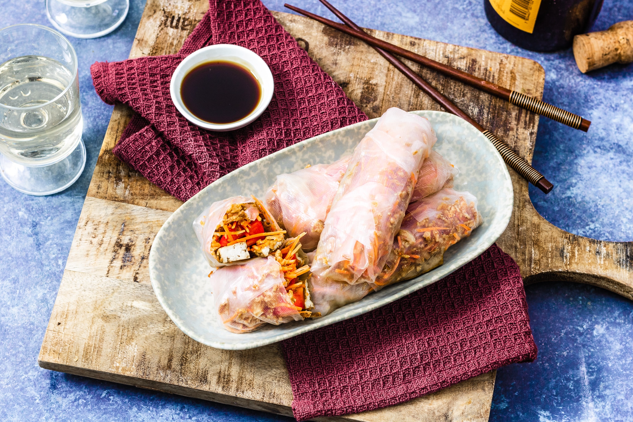 Deze springrolls met tofu, paprika en gebakken uitjes zijn zo gemaakt! Nog nooit met rijstvellen gewerkt? Wij laten in de bijbehorende video zien hoe je dat doet. Als je ‘t eenmaal een keer hebt gedaan, is ‘t supermakkelijk. Vergeten we nog te vermelden dat deze springrolls ook onwijs lekker zijn.