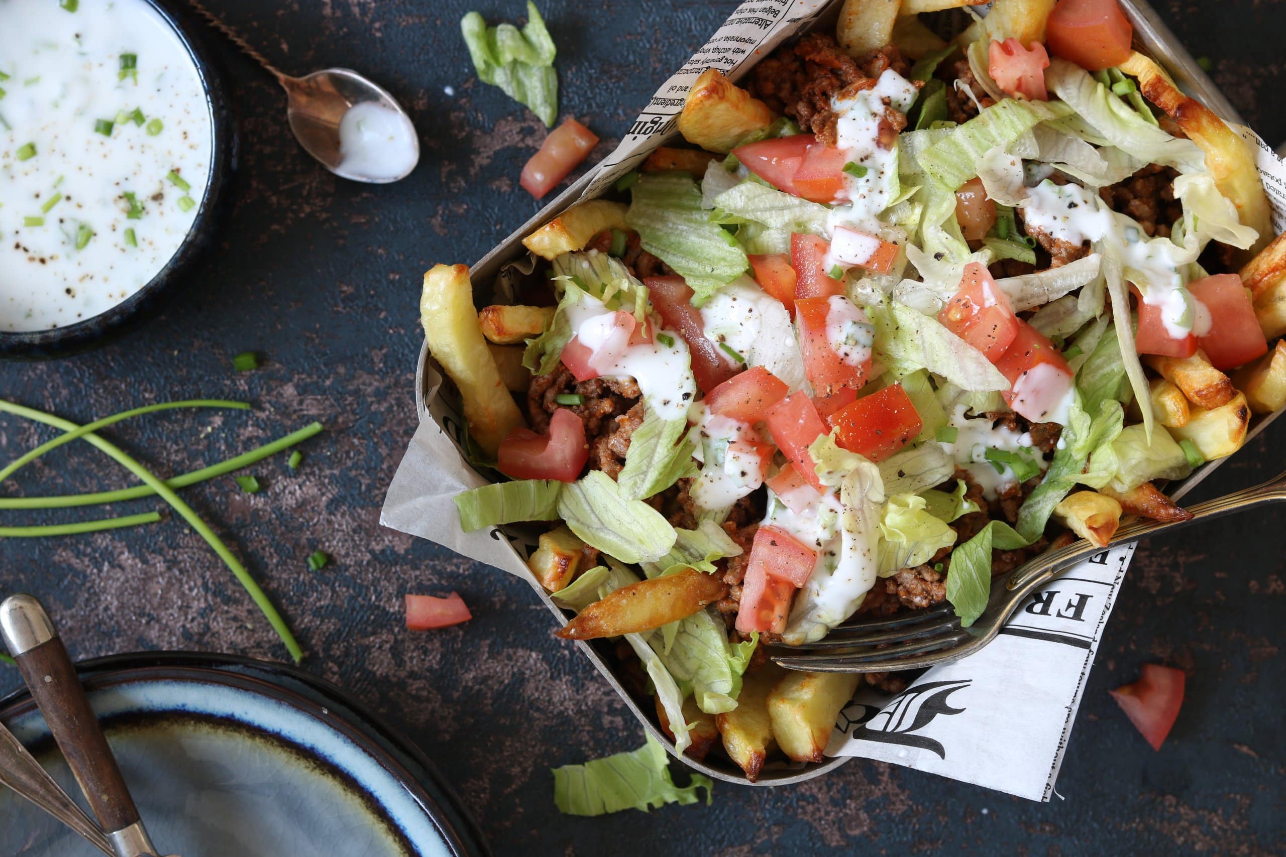 Wat is er nog lekkerder dan een Turkse pizza? Juist, een Turkse pizzaschotel! Geniet zorgeloos van dit gezondere recept met homemade frietjes, gehakt, ijsbergsla en knoflookdressing.