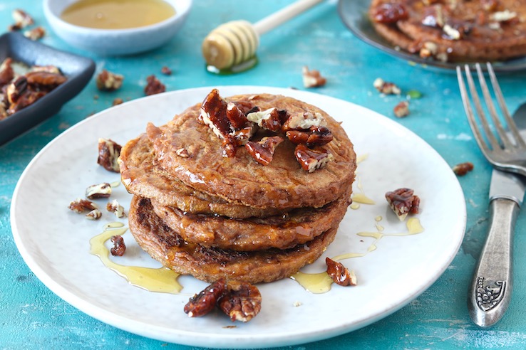 Ahhh, wist je dat je ook pannenkoeken kunt maken met pompoen? Yup, pompoen is echt een alleskunner! Deze variant is ook nog eens lekker gezond, maken dus!