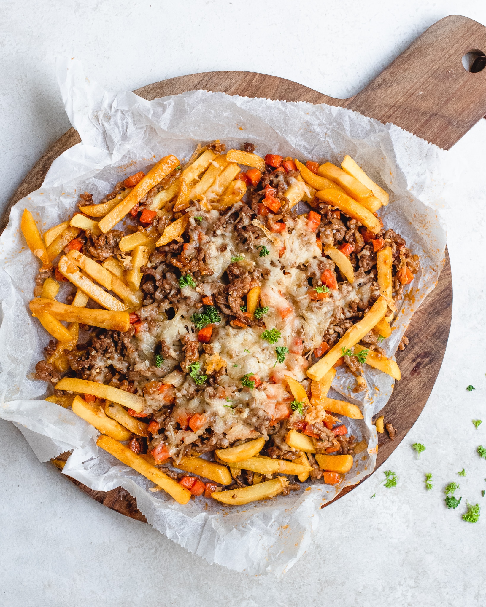 Na een lange dag waarin je tig keer natgeregend bent op de fiets, is er niets beter dan comfort food! Maak je geen zorgen, deze mega lekkere Shepherd’s pie loaded fries zijn in een handomdraai klaar – binnen 15 minuten geniet je al van je warme maaltijd!