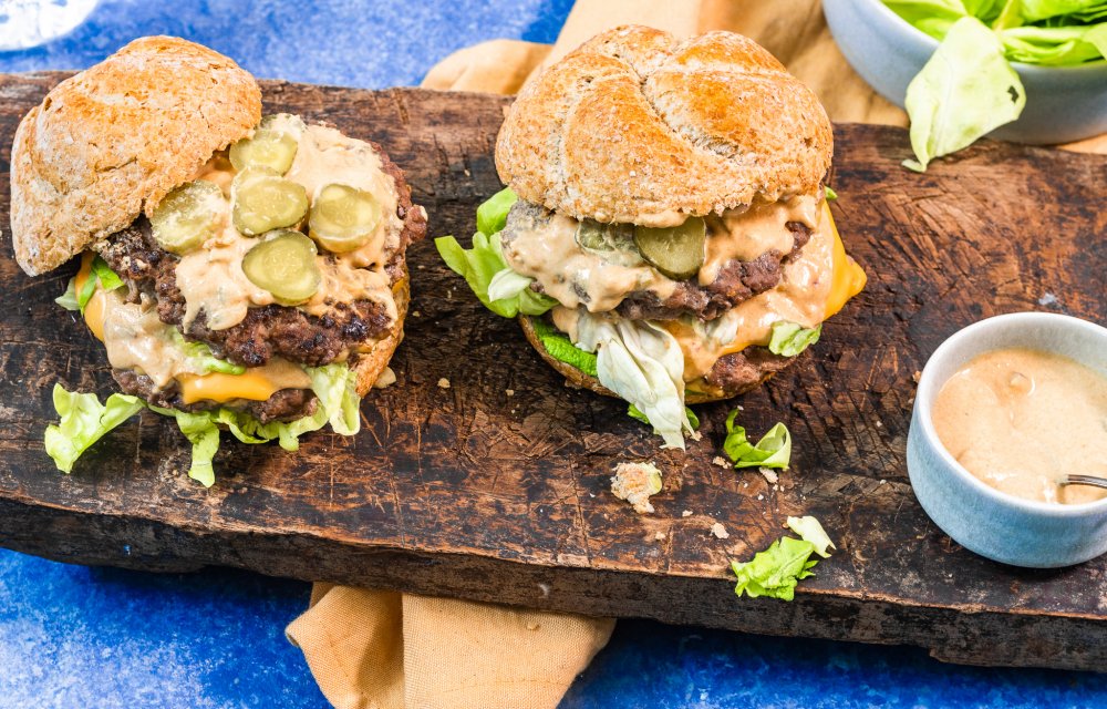 Er zijn van die avonden dat je echt hunkert naar (gezonder) fastfood. Deze cheeseburger met halloumi is dan alles wat je nodig hebt. Eet ‘m vegetarisch of met vlees; de halloumi – onze favoriete grillkaas – is een smakelijke bonus.