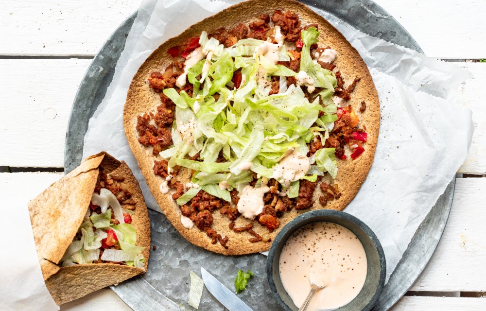 Wij kunnen geen genoeg krijgen van Big Mac’s! Vandaar dat we vandaag een nieuwe variant op dit heerlijke broodje maken; gezondere Big Mac-wraps! Je maakt dit gezondere fastfood met (vega) gehakt, cheddar, volkorenwraps en natuurlijk met een heerlijke saus!