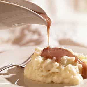 Aardappelpurree met gravy (jus) mag niet ontbreken