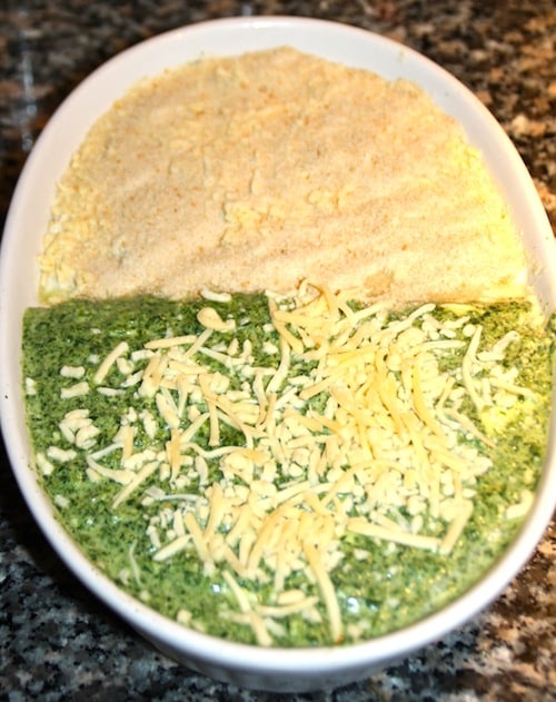 – Strooi het paneermeel en de rest van de parmezaanse kaas bovenop het mengsel en zet de schaal in de oven.