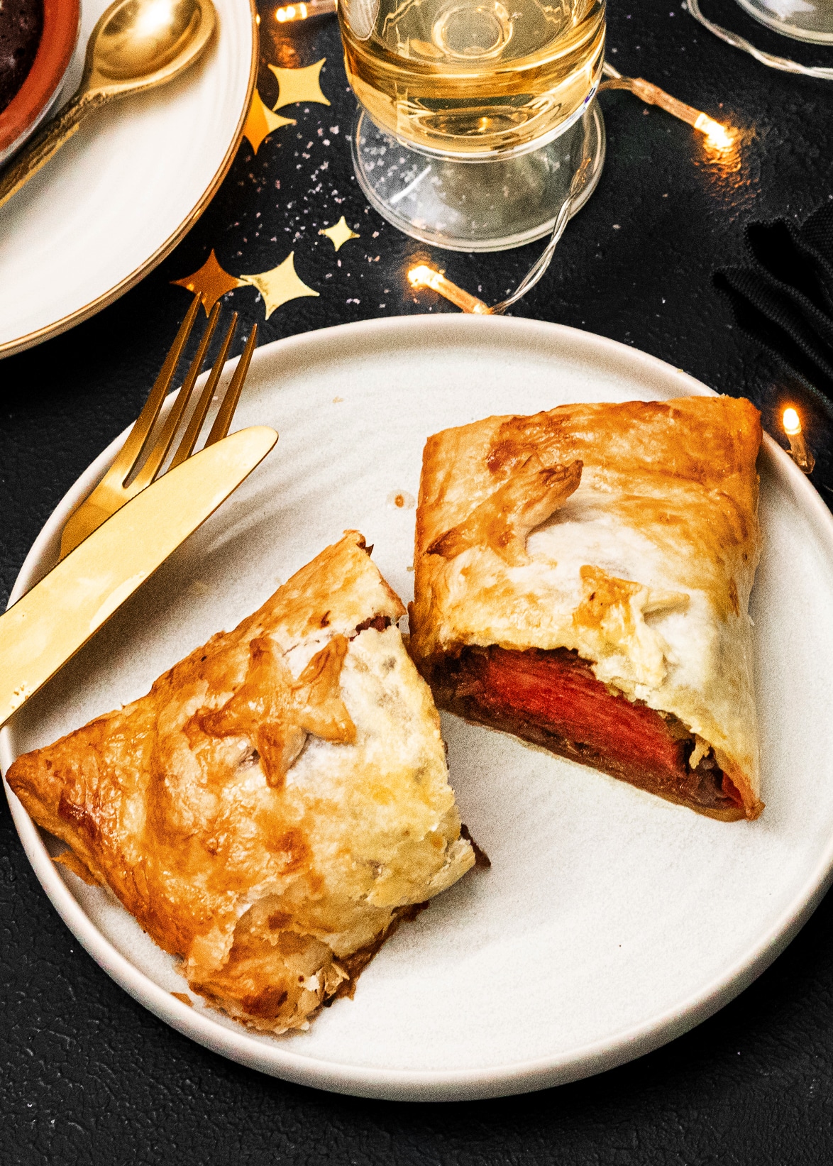 Beef Wellington, een klassieker die écht niet mag ontbreken in dit rijtje met de lekkerste hoofdgerechten voor het kerstdiner. Een ossenhaasje met een paddenstoelmengsel en zoute ham verpakt in bladerdeeg. Mmmm… Om te watertanden!
