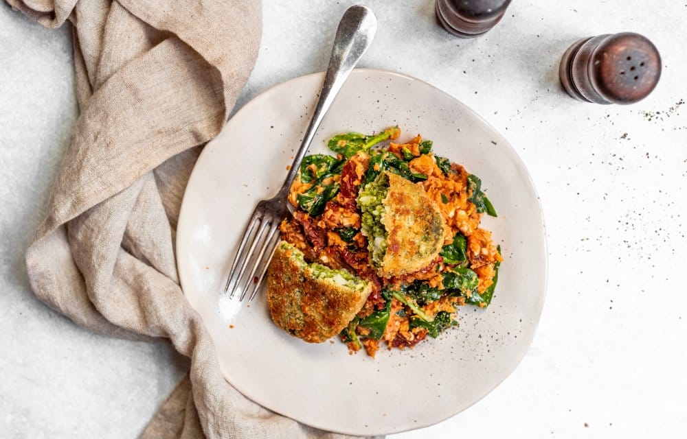 Deze vega kip-pesto ovenschotel bevat maar 5 ingrediënten. Het perfecte gerecht op een drukke dag, je hebt er namelijk maar een kwartiertje werk aan. De andere 15 minuten staat-ie in de oven en dan is het tijd om te genieten.