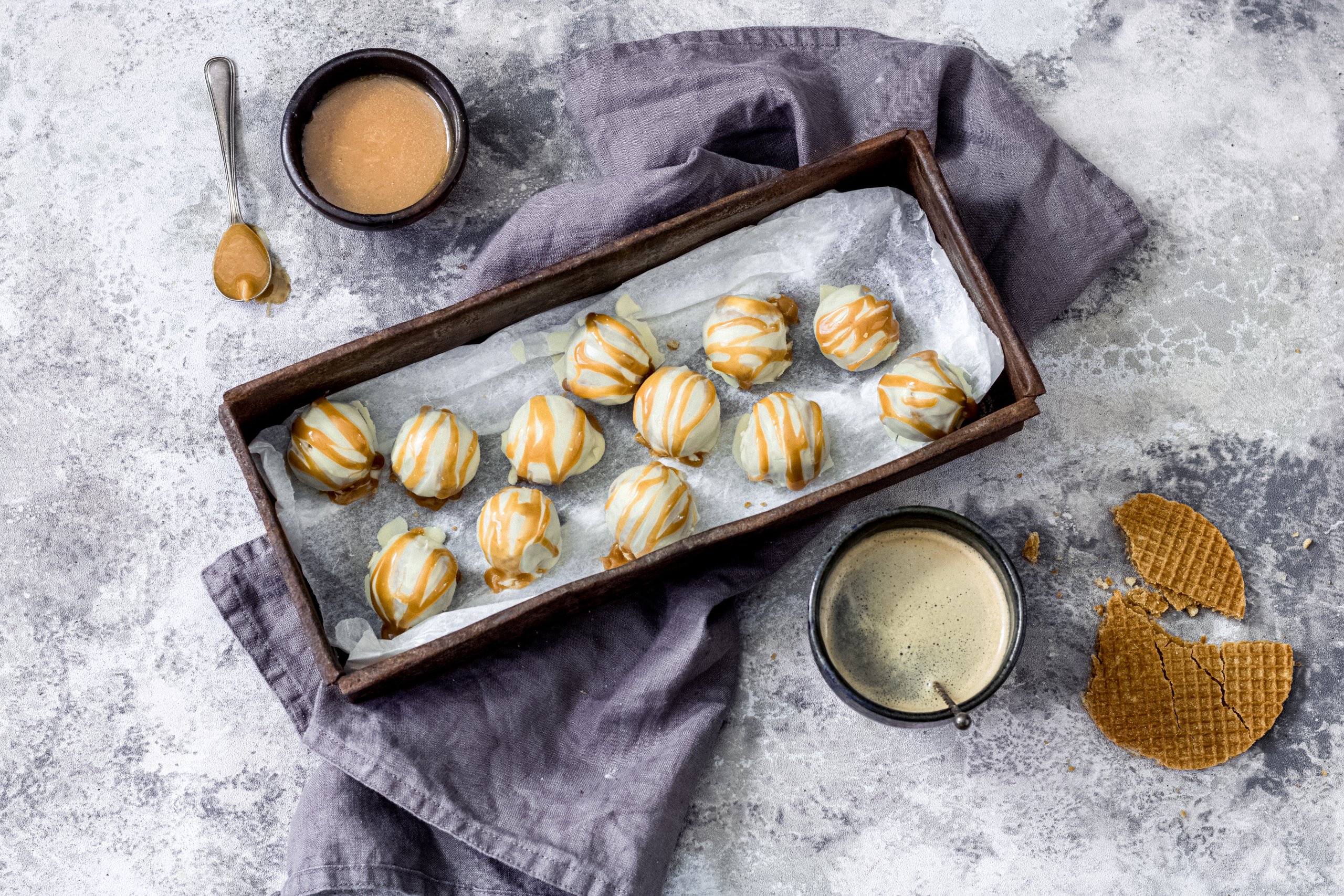 Het is toch een feestje op zich om deze truffels te serveren? Geen idee of je iets te vieren hebt, maar je kunt best iets bedenken! Dat we wat versoepelingen krijgen van de lockdown of (als je kids hebt) dat de basisscholen maandag weer opengaan. En oh ja, je maakt deze stroopwafeltruffels al met maar 4 ingrediënten.