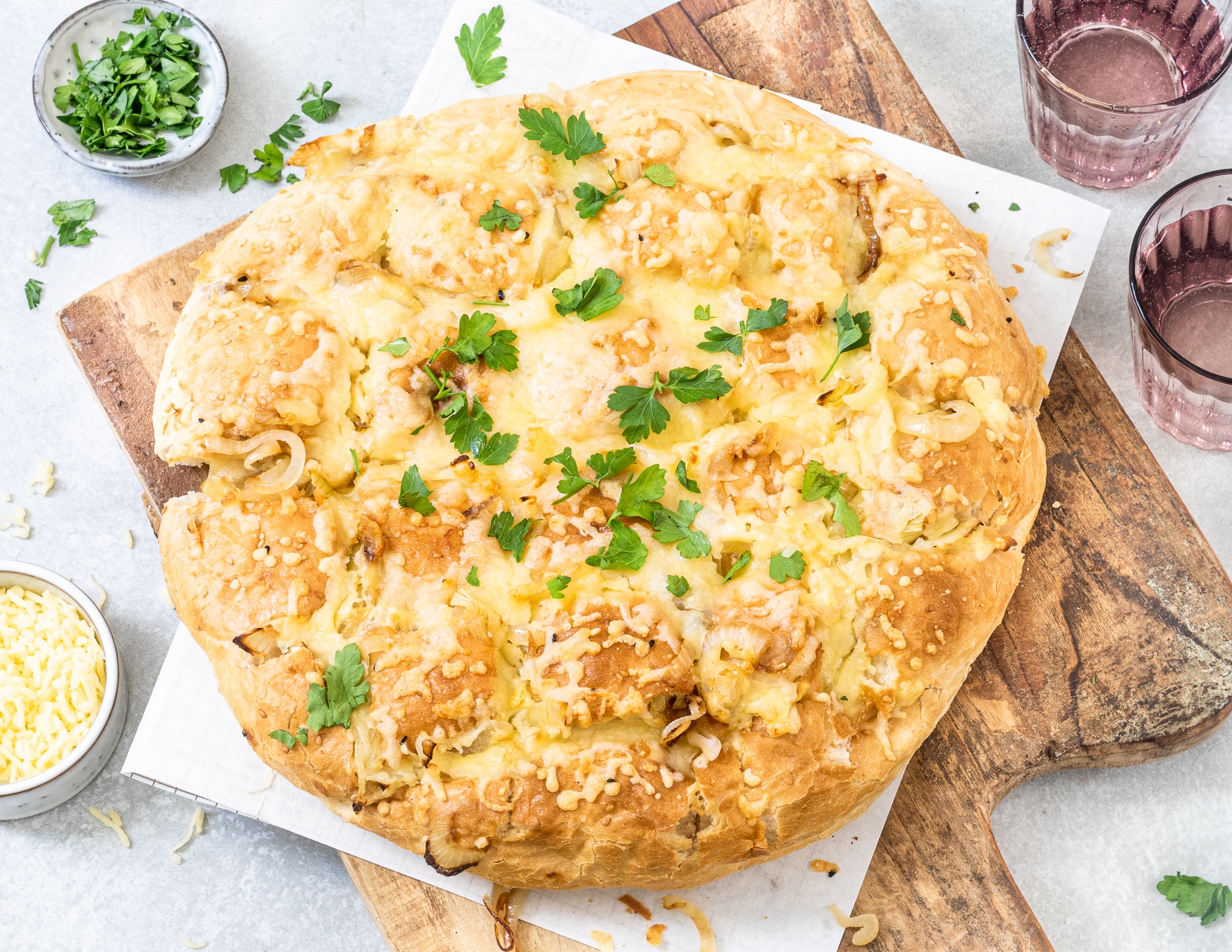 Een broodje mag natuurlijk niet ontbreken op je borreltafel. Daarom staat op nummer twee in deze 3x feestelijke borrelhapjes voor je EK-avond een heerlijk kaas-uien borrelbrood. Deze snack is niet alleen mega lekker, maar ook nog eens supersnel klaar.
