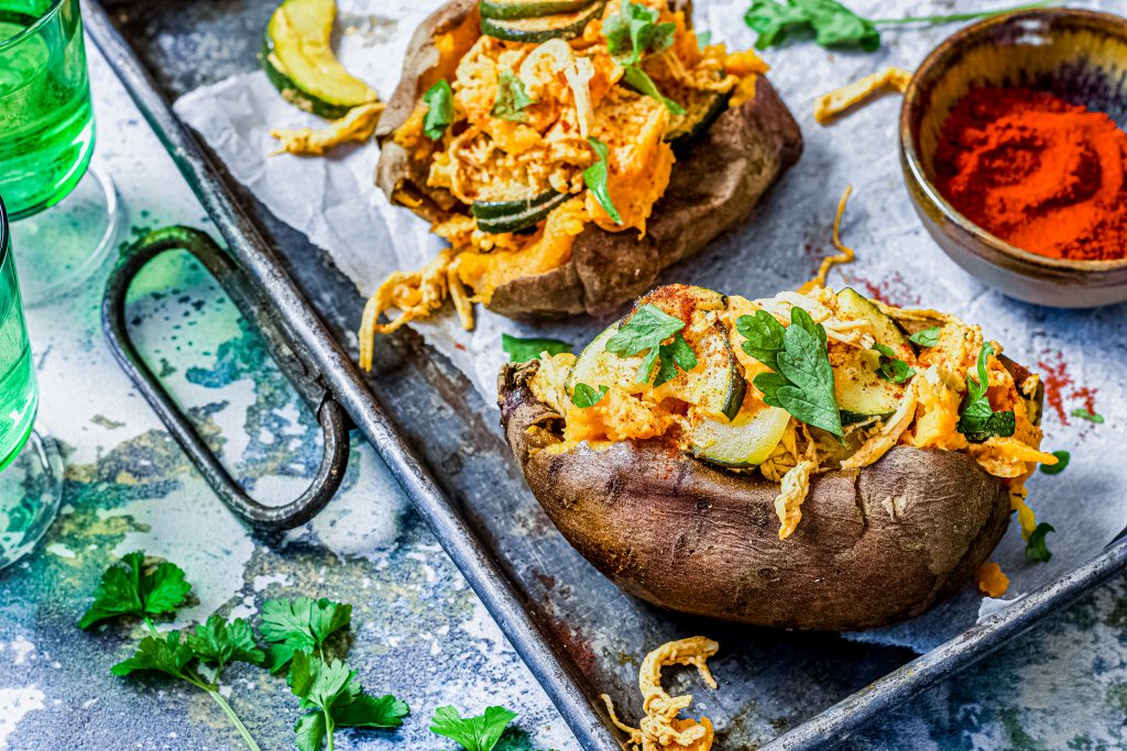 Een knaller om mee te beginnen: deze gepofte zoete aardappel met pulled chicken komt vast en zeker in je favorietenlijstje te staan. Met heerlijke ingrediënten als peterselie, Griekse yoghurt en natuurlijk de pulled chicken, is het niet moeilijk om te genieten van deze maaltijd.