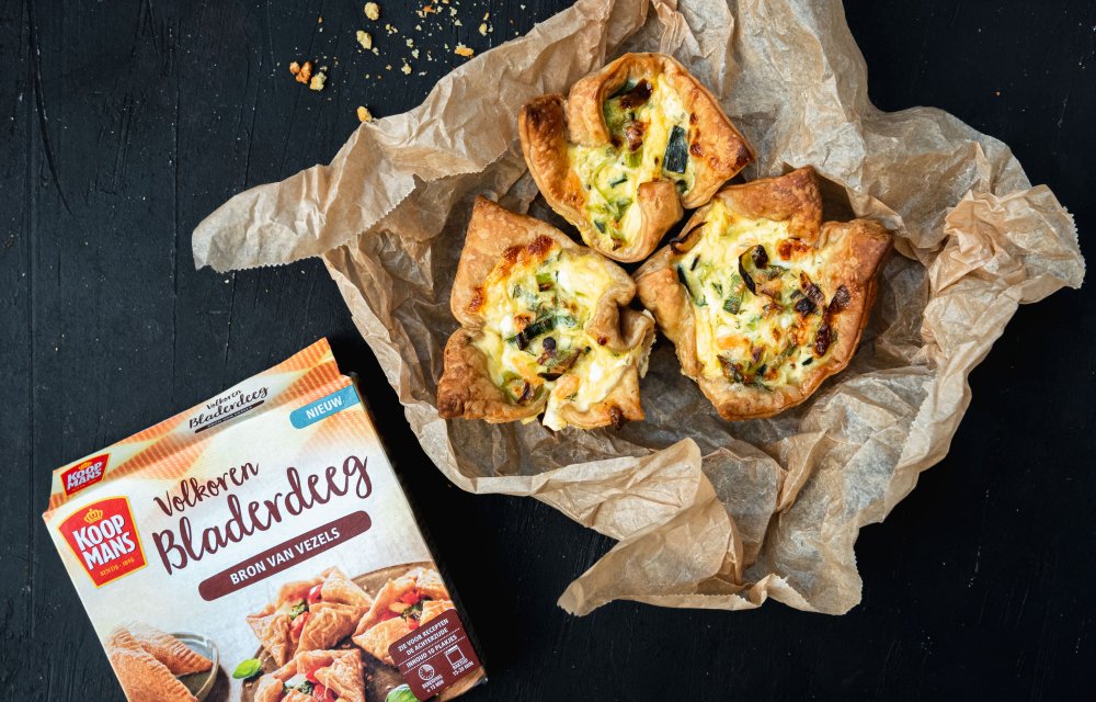We zijn voor deze verjaardagshapjes aan de slag gegaan met de producten van Koopmans. Het zelfrijzend amandelbakmeel en glutenvrij basismeel zijn tópuitvindingen, want zo kan iedereen van deze lekkere snacks genieten. En het volkoren bladerdeeg is ook echt een uitkomst, lekker crunchy en ‘t bevat meer vezels dan wit bladerdeeg.