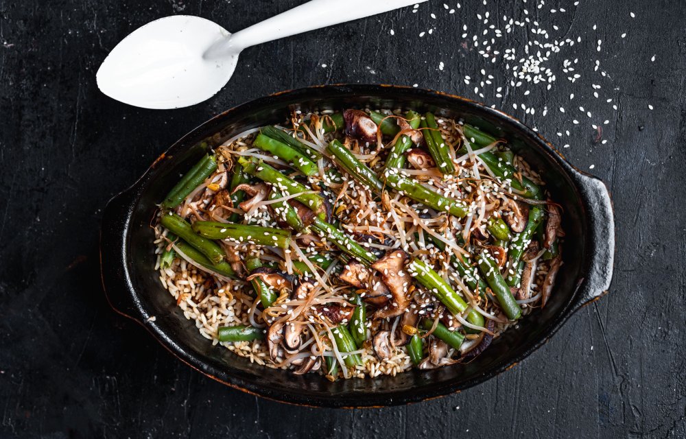We sluiten deze 3x leftover ovenschotels uit de stoomoven met 6 ingrediënten af met deze Japanse groenteschotel. Zowel rijst als groente komt in de stoomoven het beste tot hun recht, dus je kunt je vast voorstellen dat dit een overheerlijke schotel is. Je maakt ‘m al in 35 minuten met sperziebonen, sojasaus en zilvervliesrijst.