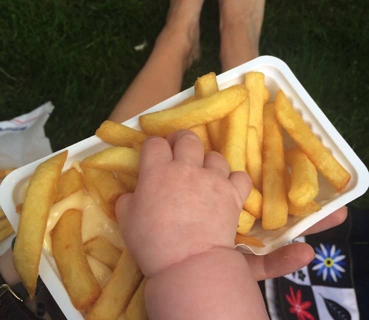 Enne, die foto is een grapje hoor, NEE ik geef mijn baby geen friet als lunch 😉
