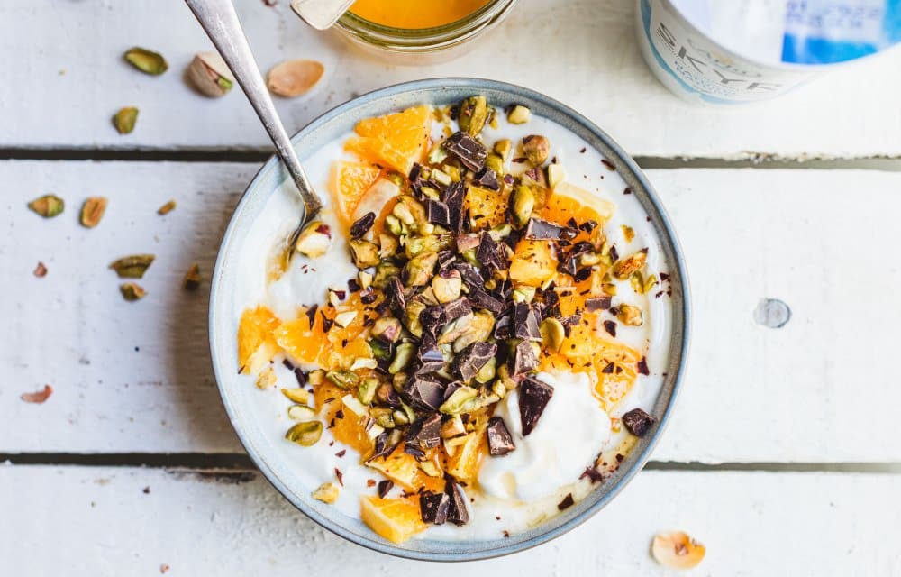We sluiten de 3x supergezonde ontbijtjes in 5 minuten af met een onwijs lekkere, namelijk de gezonde sinaasappel-chocobowl. De Skyr met sinaasappel, pistachenoten en pure chocolade zorgt voor een héérlijke smaak. Wij krijgen er trek van, eet smakelijk!