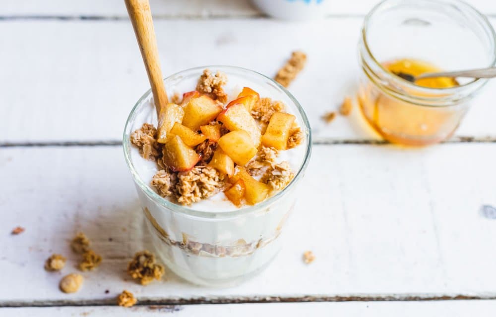 We love appeltaart en hoe lekker is het dan om een gezondere versie als ontbijt te eten? De gezondere ontbijtappeltaart maak je met appel, honing, granola en romige yoghurt. Wij zijn fan!