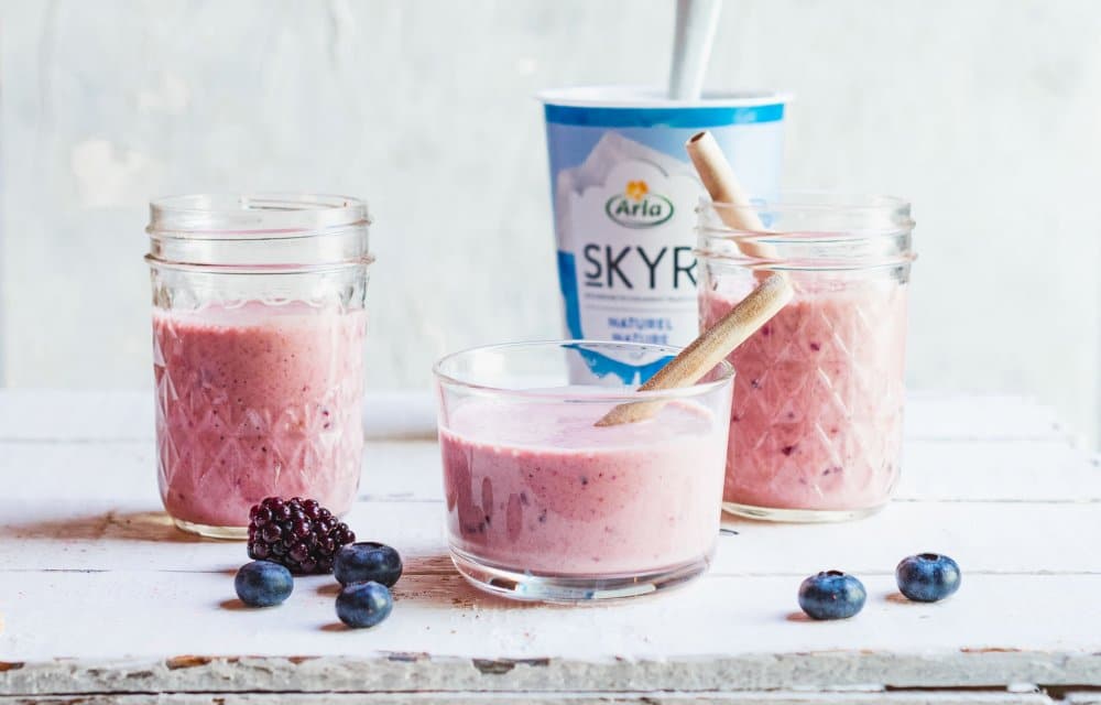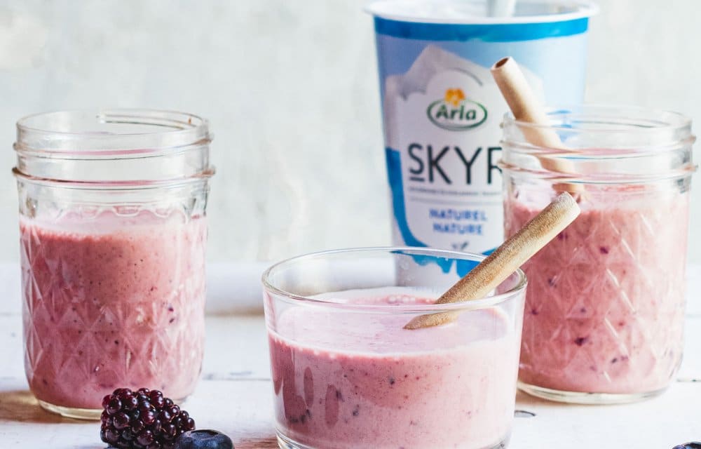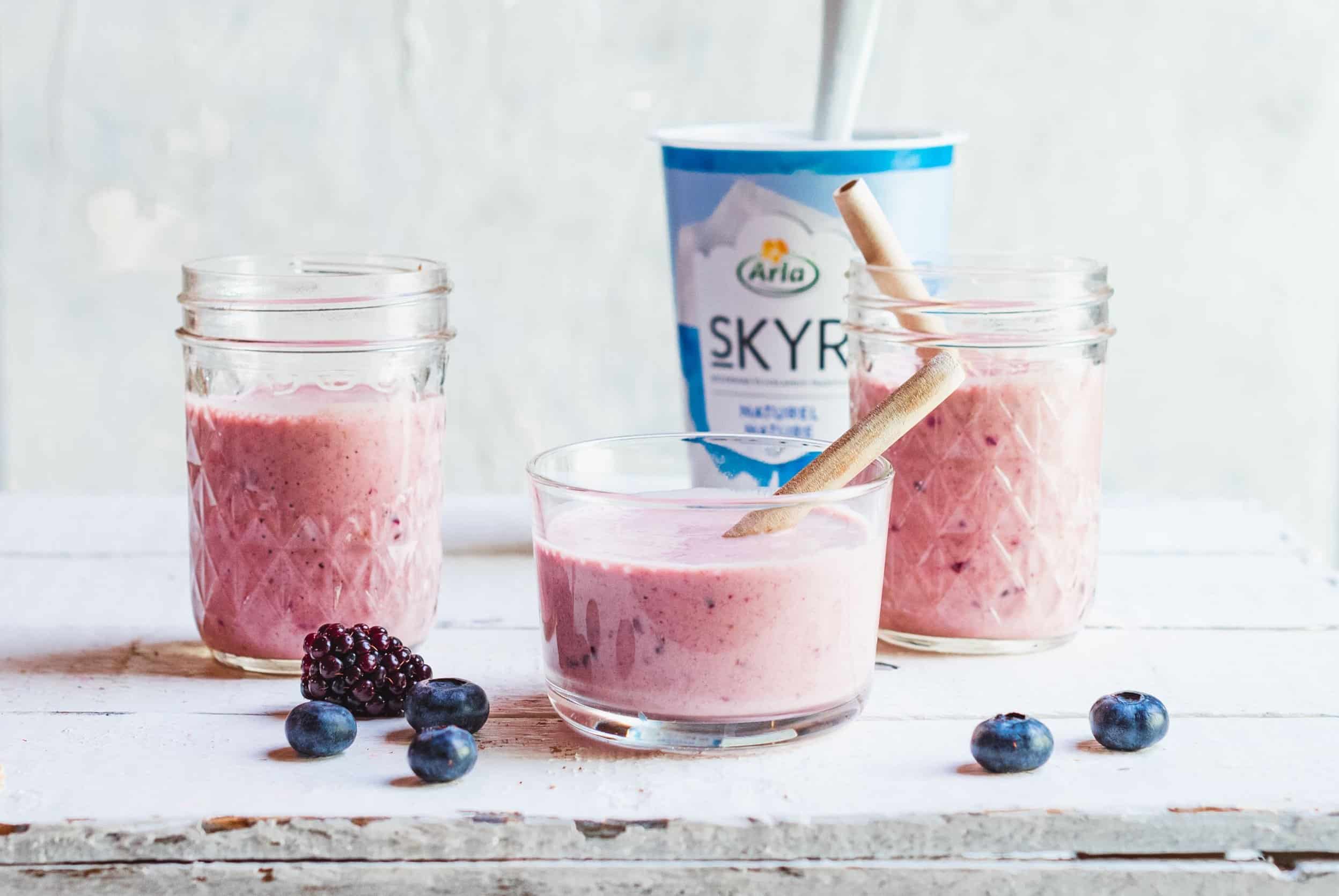 Een smoothie in de ochtend is altijd lekker. Deze gezonde roodfruit-banaansmoothie is fris en toch romig dankzij de Skyr en halfvolle melk.