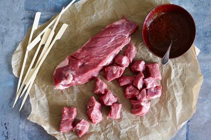 – Snijd de jodenhaas in blokjes en meng door de marinade.