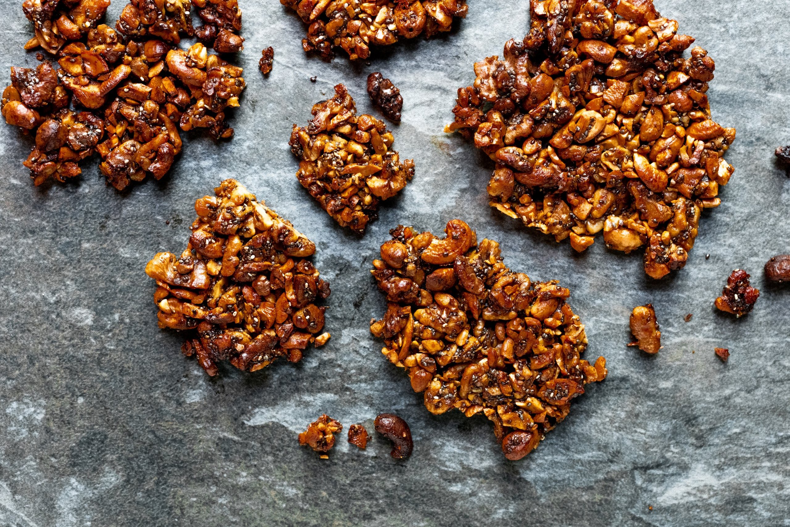 – Verwijder het bovenste vel bakpapier en bak het notenmengsel 35 minuten in het midden van de oven.