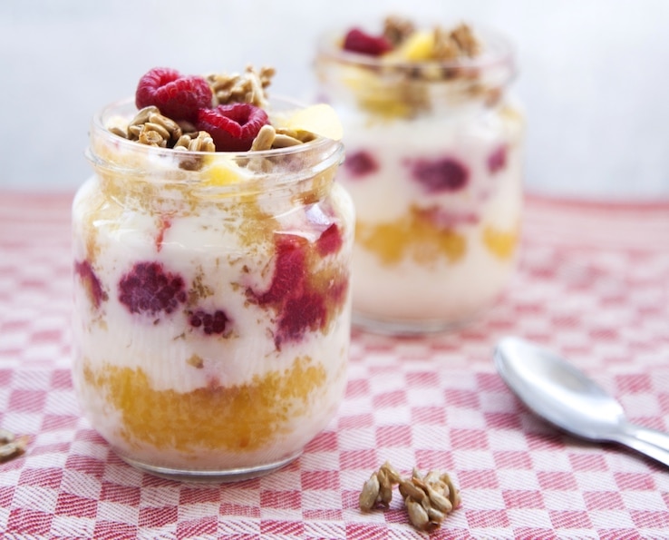 Ideaal voor als je haast hebt s’ ochtends. Zet dit yoghurtontbijtje de avond van te voren klaar, dan kun je het de volgende ochtend zo meenemen. Prop het potje vol met al het zomerfruit wat je hebt liggen, bosbessen, frambozen, aardbeien, meloen. Name it! Hier vind je het recept. Zin in een snel warm ontbijtje to go? Maak dan de healthy ontbijt cake-mug. Lepel mee en go go go. Hier kun je de foodvideo bekijken.