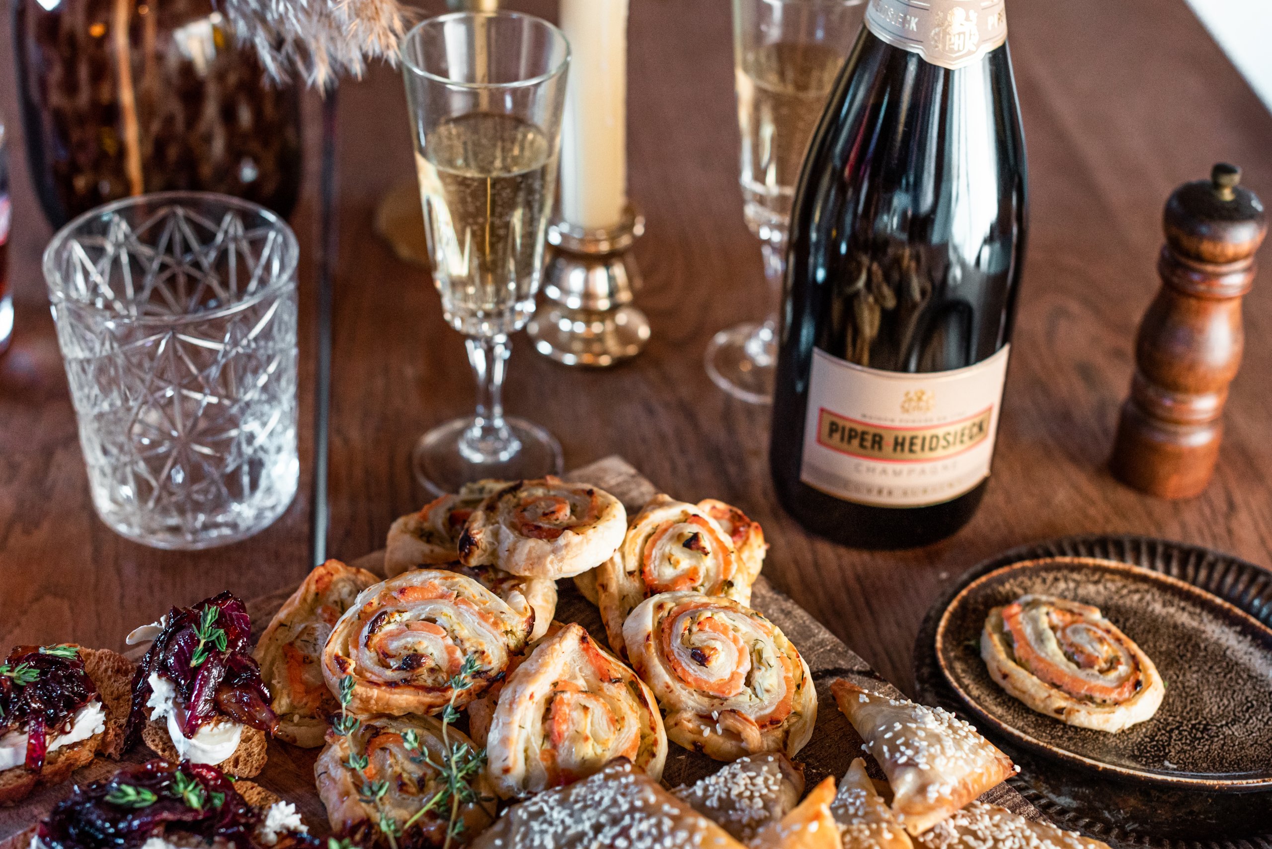 1. Bladerdeegrolletjes met gerookte zalm en zelfgemaakte kruidenkaas