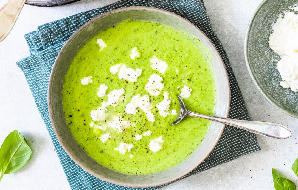 Een frisgroene courgette-doperwtensoep met romige ricotta om het af te maken… That’s it! Deze courgette-doperwten maak je met slechts 5 ingrediënten en zet je binnen 15 minuten op tafel.