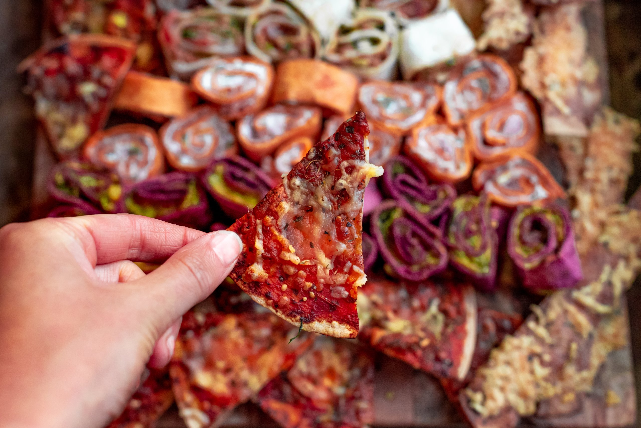 – Snijd de opgerolde wraps in rolletjes en serveer!