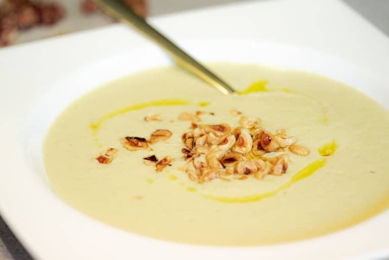 Jup, die truffelolie is een blijvertje. Ons geheimpje om soep heel makkelijk nét wat luxer te maken. 😉 Enne, deze keer bezit niet de alleen de truffelolie alle magie, hij deelt de troon met de geroosterde hazelnoten! Origineel, lekker, makkelijk te maken én hartstikke feestelijk! Oja, wij maken dit soepje lekker vegan, maar je kunt uiteraard de ingrediënten aanpassen naar jouw wens.