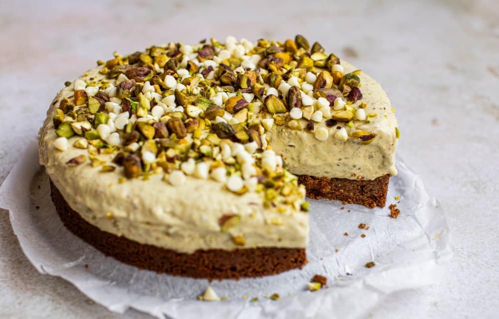 Als je écht wil uitmaken, moet je deze pistache cheesecake maken. Romig, nootachtig en heeerlijk zoet. Perfect als showstopper bij een etentje, of gewoon omdat pistache altijd een goed idee is!