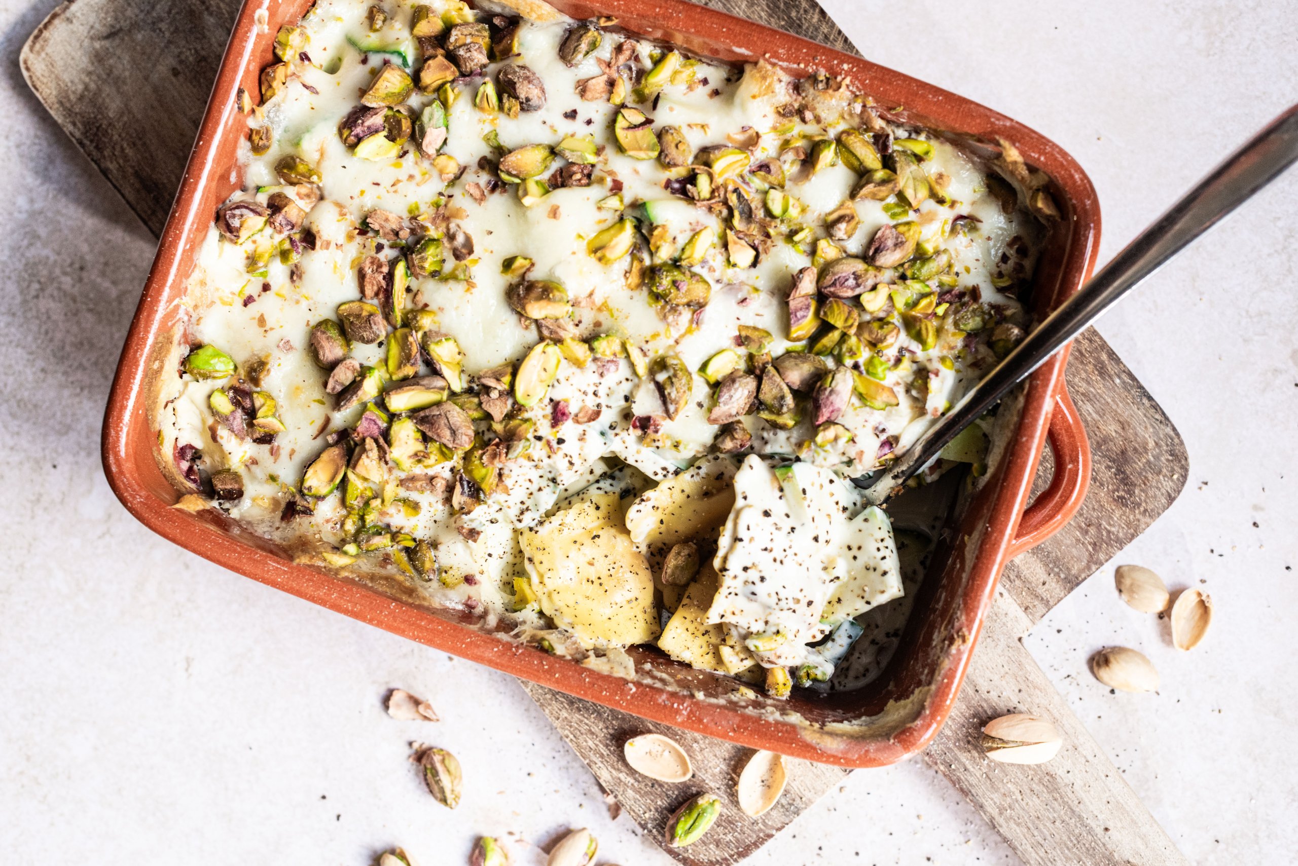 1. Romige raviolischotel met pistache