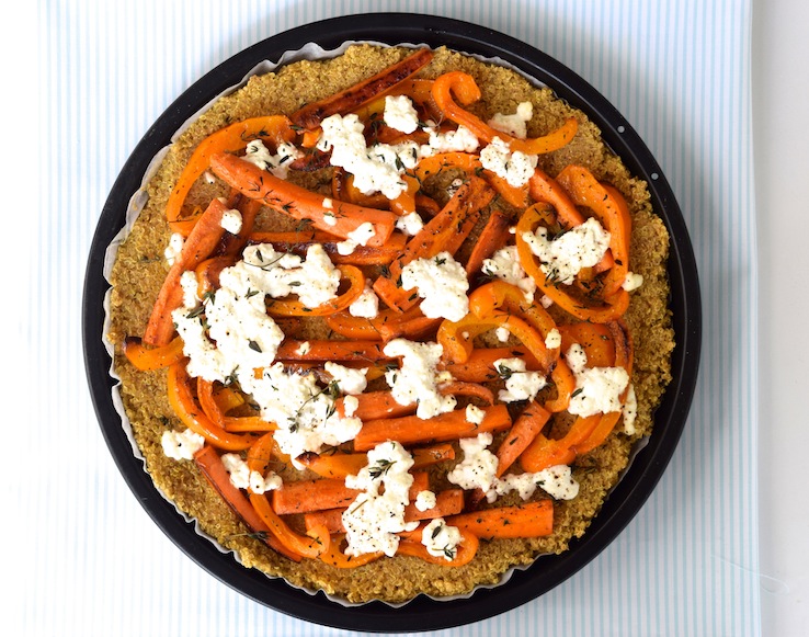 Knapperige quinoapizza met oranje groenten – gezond, lekker en ready voor Koningsdag. Wat wil je nog meer?