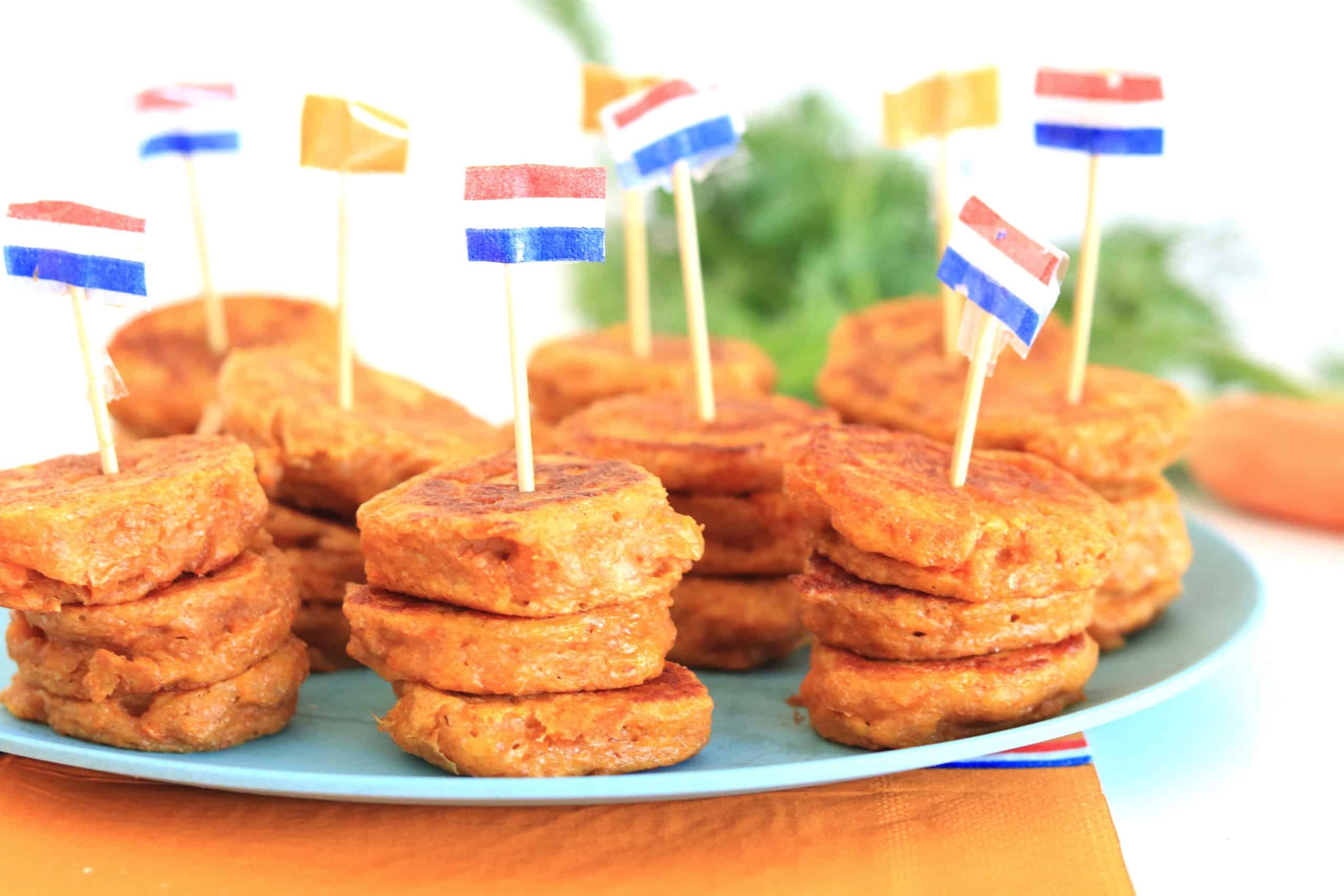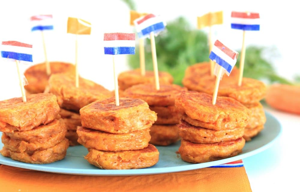 Hoe leuk staan deze wortel pancake prikkers op een borrelplank? Oranje, zoet en perfect om samen met de kids te maken. Ideaal voor Koningsdag: feestelijk, gezond en in één hap weg te happen!