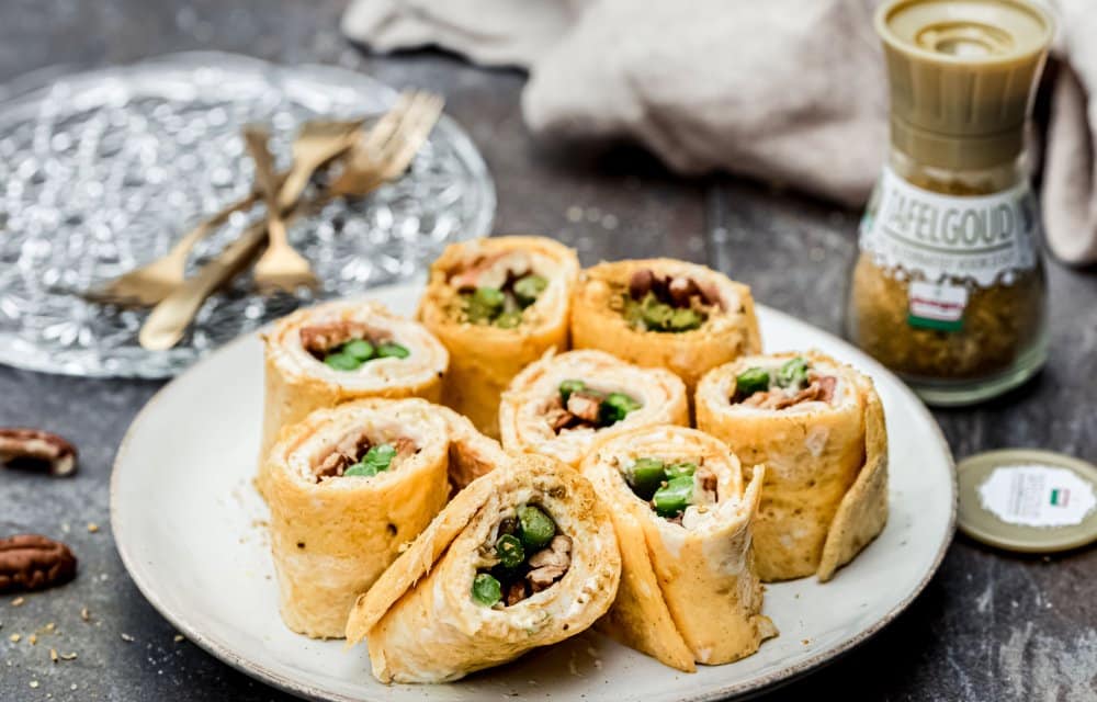 Een van de makkelijkste borrelhapjes voor in de zomer zijn eiwraps. Deze eiwraps met kipfilet, pittige mayonaise en groene asperges zijn zó simpel om te maken, maar oh-zo lekker! We loooove eiwraps.