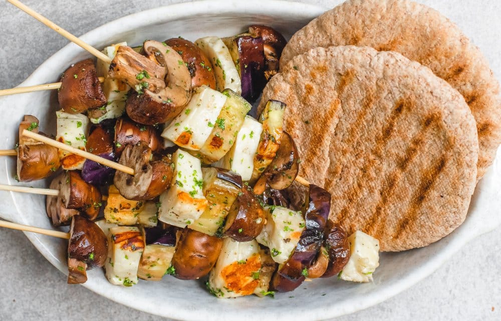 Deze spiesjes met halloumi, aubergine en kastanjechampignons zijn supersnel te maken. Enne, ook fijn: je hebt een enigszins gezond borrelhapje voor je neus staan!