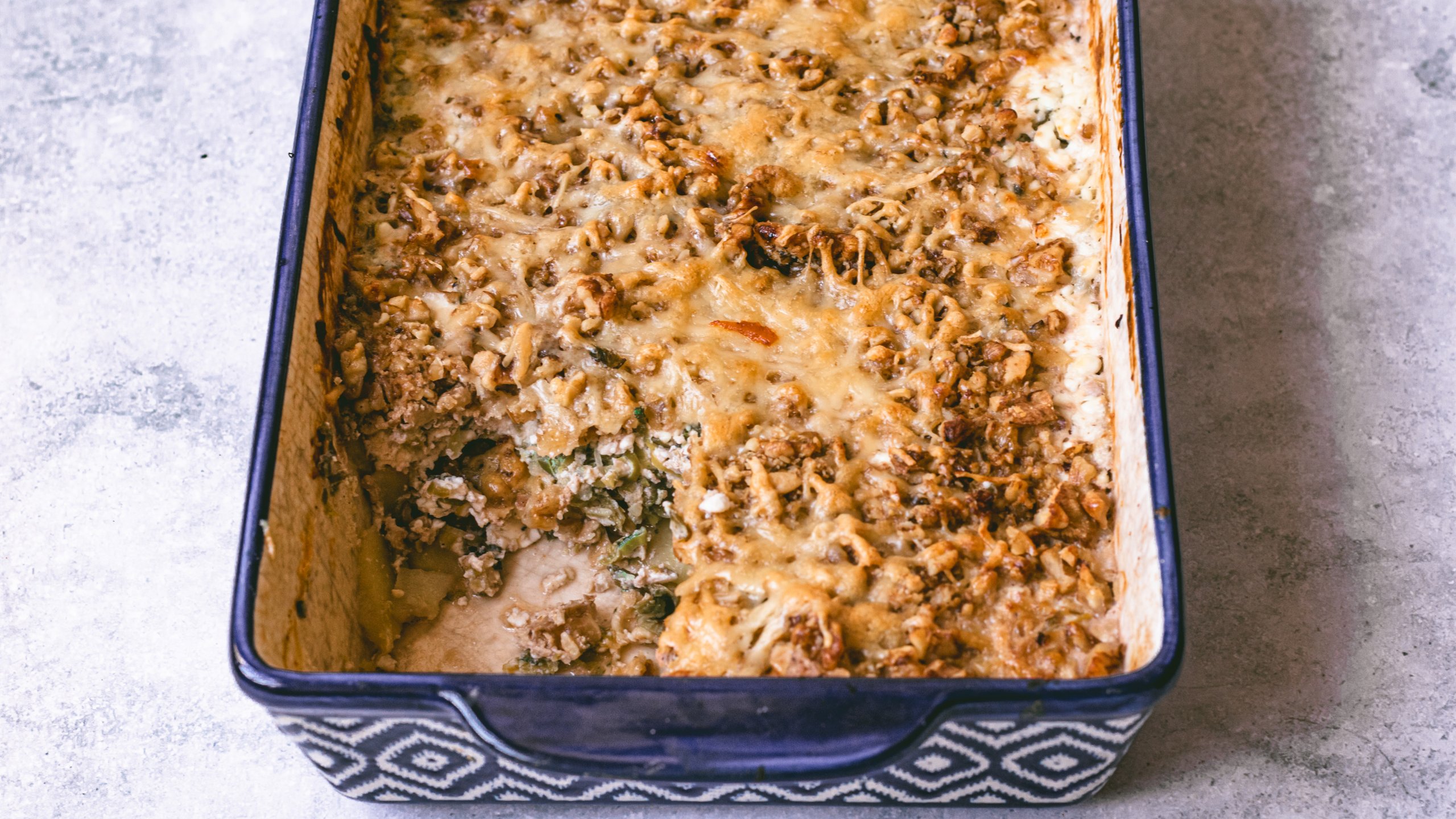 Deze witlof-aardappelgratin is precies wat je wilt op een koude winterdag: warm, romig en heerlijk cheesy. De bittere witlof, zachte aardappelschijfjes en crunchy walnoten vormen samen een perfecte combi van comfort en bite.