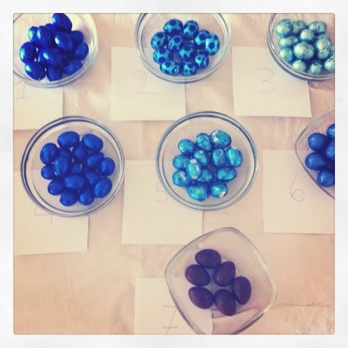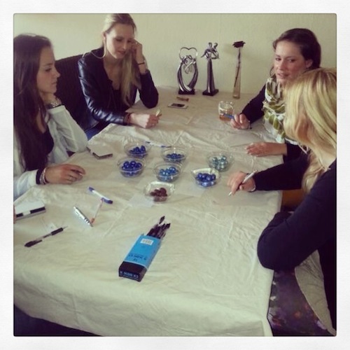 Ik heb de paaseitjes in schaaltjes gedaan en genummerd. Zo weet ik waar welk merk ligt, maar mijn vriendinnen niet! We beginnen optimistisch aan de test, iedereen is in voor een stevige portie choco. De jury heeft z’n mening al snel klaar: ‘chemisch en een fabriekssmaak ’ (Plus), ‘Niet zo zoet’ (Kruidvat),,‘smelt lekker op je tong’ (Hema), ‘heerlijk romig, lekker’ (Jamin).
