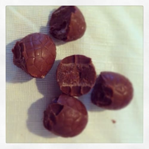 Deze paaseitjes zijn heerlijk groot, lekker zacht en smeuïg, aldus de lovende woorden van mijn juryleden. De tweede plek gaat naar de paaseitjes van de Hema. De eitjes die nul (!) stemmen krijgen, zijn van de Bijenkorf. Ze smaakten niet naar chocolade en hadden een rare groene appel-smaak (!), aldus een van de juryrapporten.